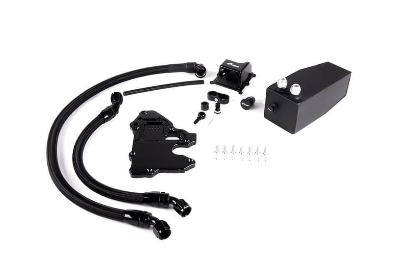 The Volkswagen Racing Line oil catch can kit is the ultimate oil separating catch can system for 1.8 / 2.0 TFSI / TSI EA888.3. This system directs unwanted oil moisture vapors through the fully shielded catch can and also corrects the problem of oil accumulation in the top of the engine during high-G braking. Then the VW Racing catch can kit keeps your intake system (intercooler, valves, intake) clean and improves engine safety!